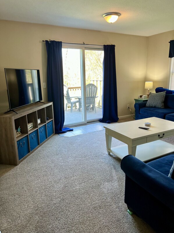 Living room: Sleeper sofa | Linens | Hulu Live Smart TV | Bar seating for 2 | Table seating for 6