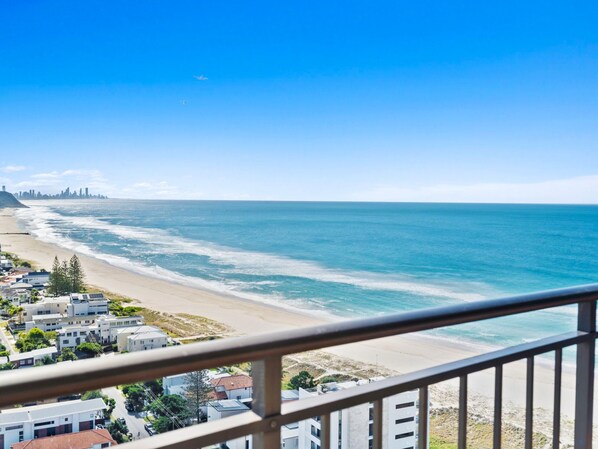 This absolute beachfront, renovated, fully self contained, 2 brm unit is located on a high floor of Royal Palm Resort, at the south end of beautiful Palm Beach. The apartment has ocean and unobstructed hinterland views from Surfers Paradise to Coolangatta.