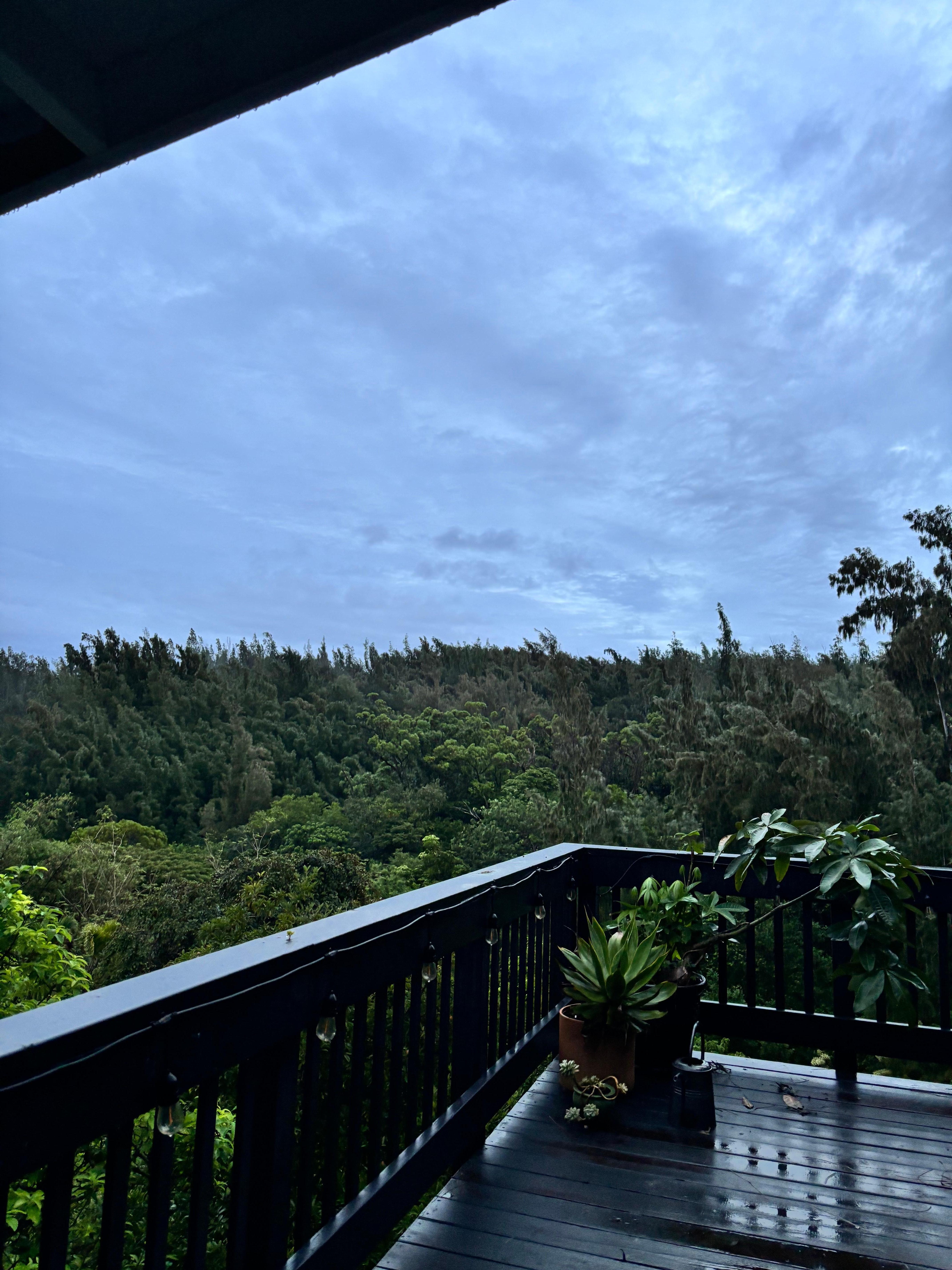 Experience this forest retreat complete with a cozy queen bed, AIR CONDITIONING, vaulted ceilings, convenient kitchenette, half bath, and an outdoor hot/cold shower. Relax on the expansive deck facing breathtaking panoramic views of the untouched jungle. Immerse yourself in the soothing sounds of nature, from the melodies of birdsong to distant ocean waves. Uncover miles of nearby hiking trails, including highly-rated pillbox hikes. Feel free to roam the acreage and pick fruit from our abundant fruit trees. Conveniently located with easy access to Oahu's finest beaches, activities, and attractions on the North Shore.