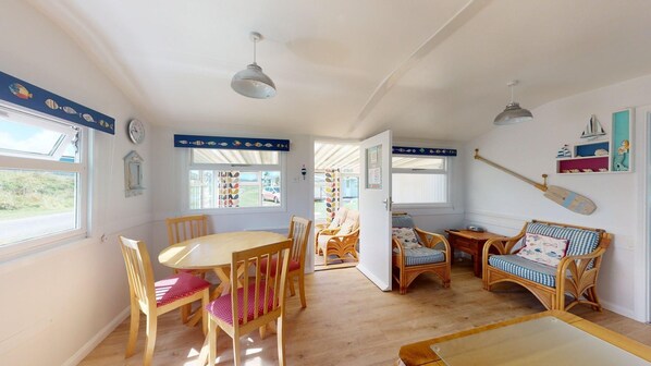Dorfli is a spacious chalet with a south west facing conservatory which gets plenty of sunshine from late morning until the sun goes down. Situated on the edge of the park and surrounded by grassy dunes, Dorfli is a great place to escape to with a family. Sleeping up to 5 with 2 doubles and 1 single, the chalet enjoys an open plan kitchen / diner and seating area which opens on to the bright conservatory, the perfect place to sit out and enjoy the sun.