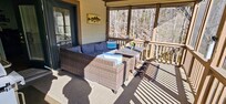 This property was lovely! Large common area with large full kitchen. Fireplaces in master bedroom and living room. The condo was decorated for Christmas in every room. Located within easy walking distance of downtown. Very nice screened-in porch overlooking the river.