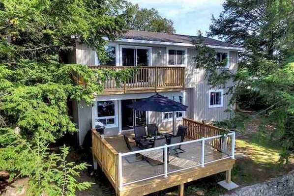 RidgeStone Cottage is a beautiful two-storey waterfront retreat located directly on the shores of Paudash Lake. Perfect for large families or mature groups, this charming cottage comfortably accommodates up to nine guests with four bedrooms and two full bathrooms.