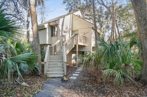 Enjoy all the amenities of Sea Pines while also having ease of access to back gate and South Forest Beach Drive. This unit has nicely updated bathrooms with space to have a lovely family friendly vacations. The main floor features a fully equipped kitchen, living and dining room, Master Bedroom & Bath plus the Guest Bedroom and 2nd bath also located on the main floor. On the second floor there is a loft which has two twin beds, ideal for kids looking to have there own space. It is accessed by a spiral staircase. The deck features a landscaped view.