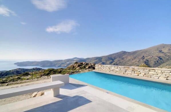 Beschikt Stemma Stone Villa | Sunset Sea Views & Private Pool Above Mylopotas Beach over een zwembad?