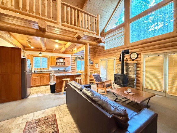 We really enjoyed our stay at the cabin. The size was perfect for us and our 3 grandkids. Here are my complaints, some aren't really a big deal though. First was that the other cabins are fairly close together. You can hear other people outside when the windows are open. It kinda spoils the whole out in the woods feel. We were also a little disappointed that there was no firepit to roast marshmallows. They had everything we needed on the inside but we like to cook and all the utensils, knives, dishes etc are really cheap quality. Like the spatula was melting, the mugs got extremely hot when microwaved and the knives didn't cut. So here are the positives: We loved the layout with the master upstairs and the other two on the main. It was great having laundry facilities, the hot tub was very nice (although leaked with jets on), the deck was amazing. We like the close proximity to everything in Island Park as well. The interior is beautiful, clean and nicely decorated.