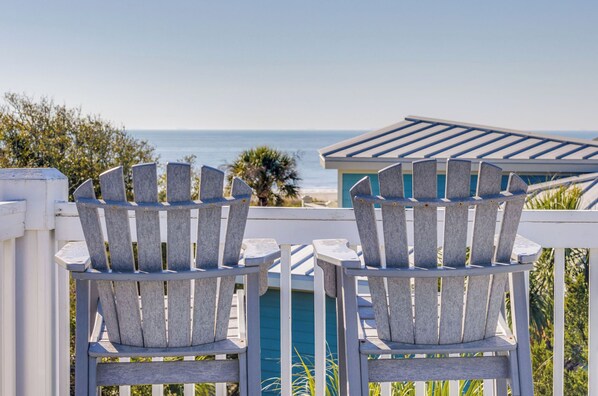 Welcome to Sandy Shanty, a luxurious 5-bedroom, 5.5-bathroom beach house just steps away from the ocean. With a reverse floor plan that maximizes space and comfort, this stunning retreat is perfect for family and friends seeking the ultimate Charleston Coast getaway.