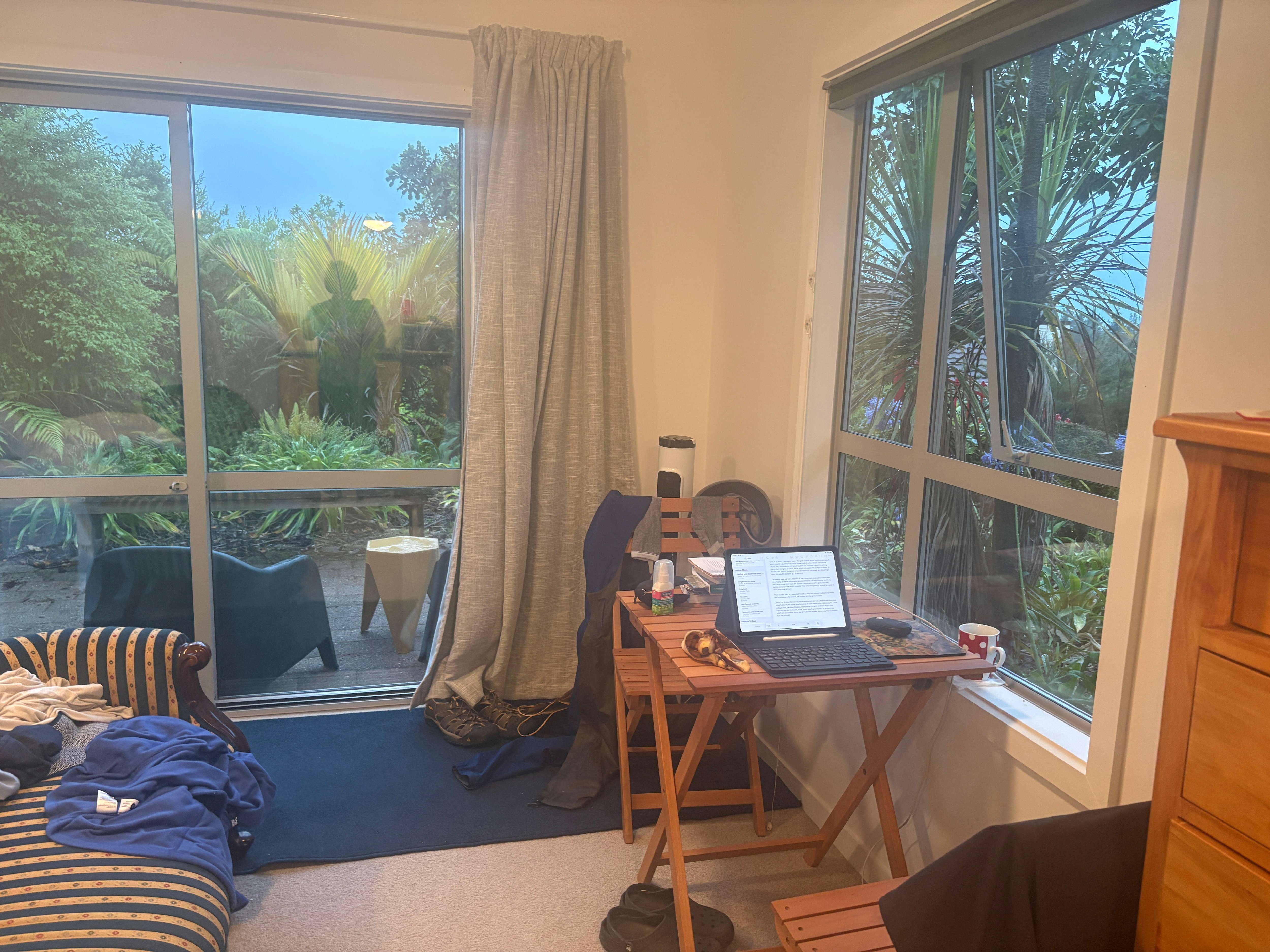 Step outside to the private, sunny north-facing patio and soak in the stunning views of the Abel Tasman coast, including Adele and Fisherman Islands. The peaceful garden and outdoor area provide the perfect setting for morning coffee or evening relaxation.