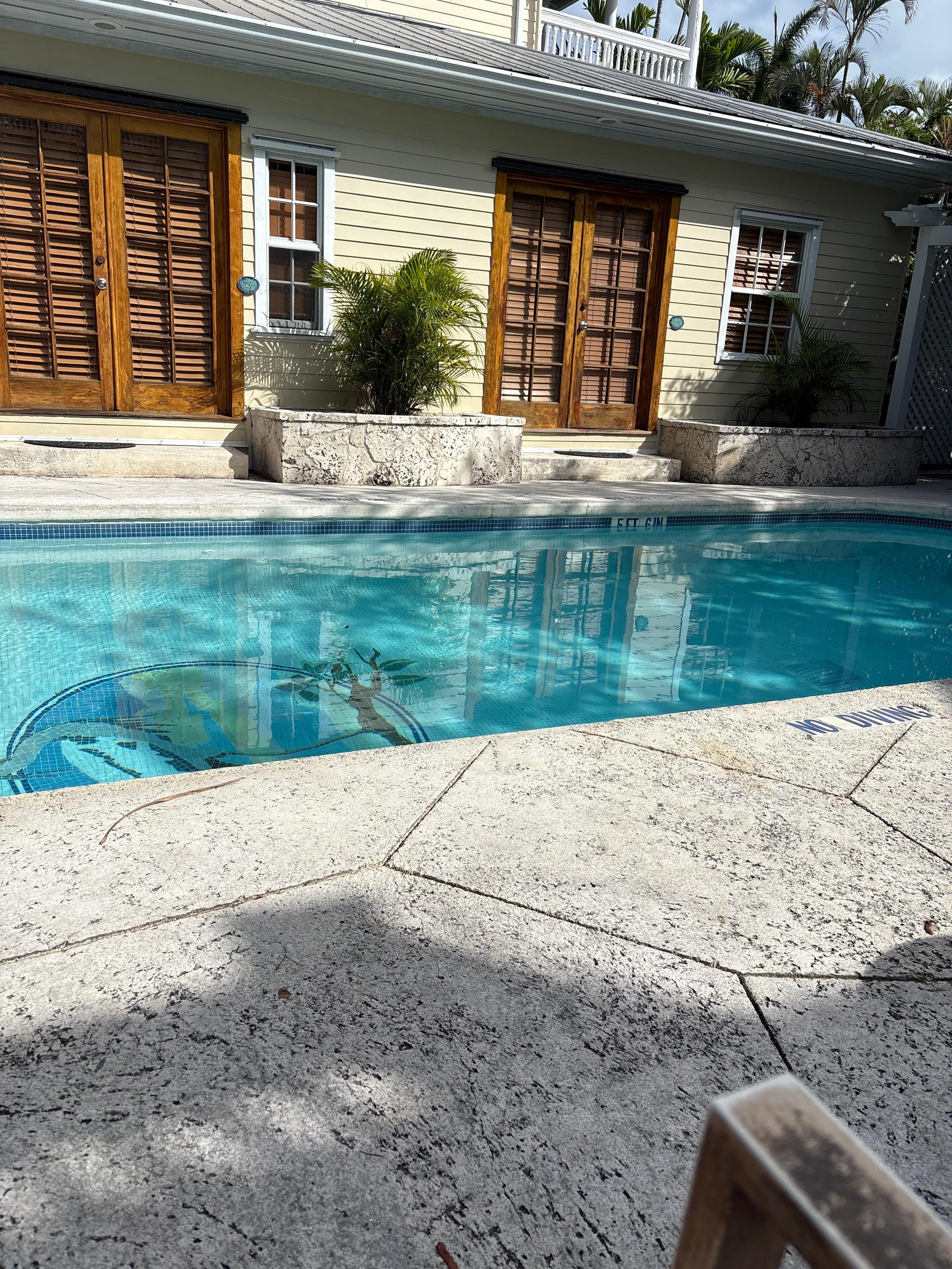 We loved it there! The location is perfect, centrally located just a block off of Duval st. Quiet We were in room 48, an upstairs king suite next to the rooftop sun deck, overlooking the pool. Our room was clean, the bed was comfortable and the breakfast selection was good.