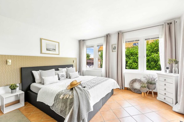 Dans notre ancienne ferme historique, nous vous proposons une maison de vacances restaurée avec amour. Six chambres doubles avec beaucoup de style et attention aux détails réparties sur 210 m². Au rez-de-chaussée, il y a une cuisine entièrement équipée et une salle à manger pour 12 personnes. Le salon a une cheminée pour les heures romantiques. Trois toilettes et deux salles de bains spacieuses sont à la disposition de nos hôtes, au rez-de-chaussée avec baignoire, douche, double vasque, à l'étage avec douche et double vasque. Des serviettes et des serviettes de bain suffisantes sont prêtes pour vous. Un jardin entièrement clôturé avec terrasse vous invite à vous détendre ou à faire un barbecue. La terrasse est meublée avec des meubles en bois et des parasols pour douze personnes. Dans la maison est une connexion Wi-Fi gratuite, télévision par câble, 3 places de parking est disponible sur la propriété.