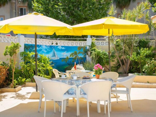 "Pedro", 4-room house 138 m2, on the ground floor. Object suitable for 6 adults. Spacious, simple and practical furnishings: living/dining room 30 m2 with digital TV, paraffin heater, air conditioning and forced-air heating. Exit to the patio. 1 room 12 m2 with 1 french bed (135 cm, length 190 cm), shower/WC, paraffin heater, air conditioning and forced-air heating. 1 room 12 m2 with 1 french bed (135 cm, length 190 cm), paraffin heater, air conditioning and forced-air heating. 1 room 20 m2 with 1 bed (180 cm, length 190 cm), paraffin heater, air conditioning and forced-air heating. Exit to the patio. Large kitchen (oven, dishwasher, 3 ceramic glass hob hotplates, toaster, kettle, microwave, freezer, electric coffee machine). Exit to the garden. Shower/WC, double hand-basin. Oil heating. Large patio 100 m2. Terrace furniture, barbecue, deck chairs. View of the swimming pool and the garden. Facilities: washing machine, iron, hair dryer. Internet (WiFi, free). Parking. The house is completely prepared for winter. VT-461757-A // Reg. Nr.: ESFCTU00000303000005785500000000000000000VT-461757-A9