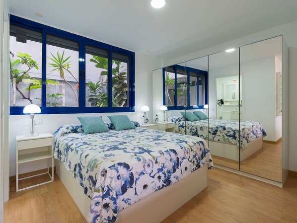 Exceptional and modern apartment with capacity for 4 people. Very spacious and bright with furniture and décor designed to facilitate an enjoyable stay either for business travel, pleasure or rest. High-end mattresses with quality lingerie (cotton or Egyptian thread) and pillow menu (Latex, visco-elastic, ergonomic, etc) to make the most of your rest. Spacious living room, there is a sofa-bed (140 x 190 cm) where you can watch a TV Samsung 50" 4K SmartTV. In the kitchen you will find a complete equipment both home appliances and fixtures and utensils (Nespresso coffee machines and traditional, oven, microwave, fridge, induction, etc). Excellent location given that is located just 50 metres from Las Canteras Beach and 100 metres from the shopping center, financial and main city leisure (terraces, restaurants, shops, El Corte Inglés, golf, paddle, auditorium). It has free safety box and high speed WI-FI internet access.