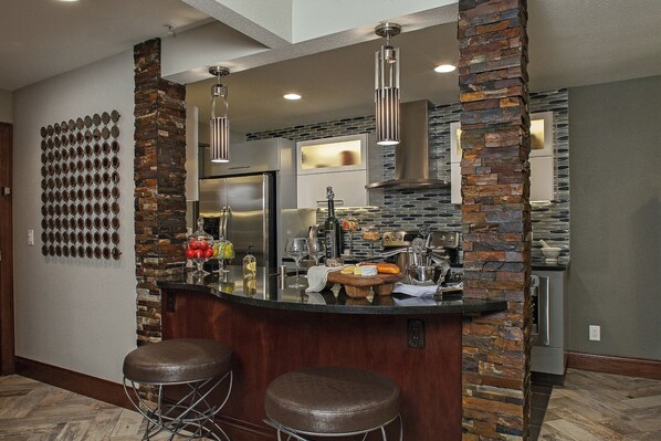 In the KITCHEN you'll find a microwave, a refrigerator, a coffee maker, a tea maker, and complimentary coffee and tea supplies. You'll love the stainless steel appliances and granite countertops.