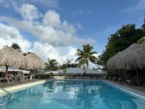Hôtel avec piscine extérieure au bord d’une plage de sable blanc