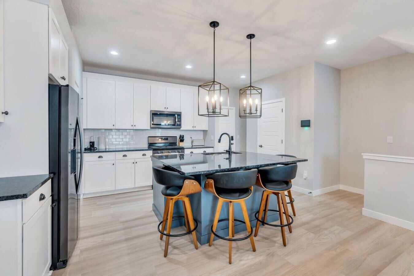 Attached car garage and main level living. 3 bedrooms, 2 full baths. Sleeps up to 10. The kitchen comes fully equipped. Full range with oven. Full refrigerator with ice maker & water dispenser. Washer & Dryer Everything is brand new!