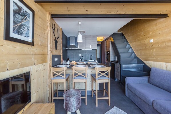 l'appartement est très bien agencé et fort bien situé au coeur de la station. le design, l'équipement et les matériaux de l'appartement sont de grande qualité. Rien à redire, nous constatons un grand soin dans l'appartement. l'espace est bien optimisé pour nous permettre d'y être à 6.