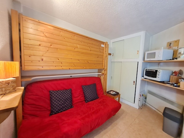 À 50m des pistes de ski, 2ème étage, balcon, parking, télévision, casier à ski, 13m², Les 2 Alpes