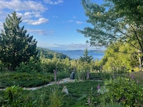 Avis sur l’hébergement Modern retreat with serene canal, forest, and mountain views.