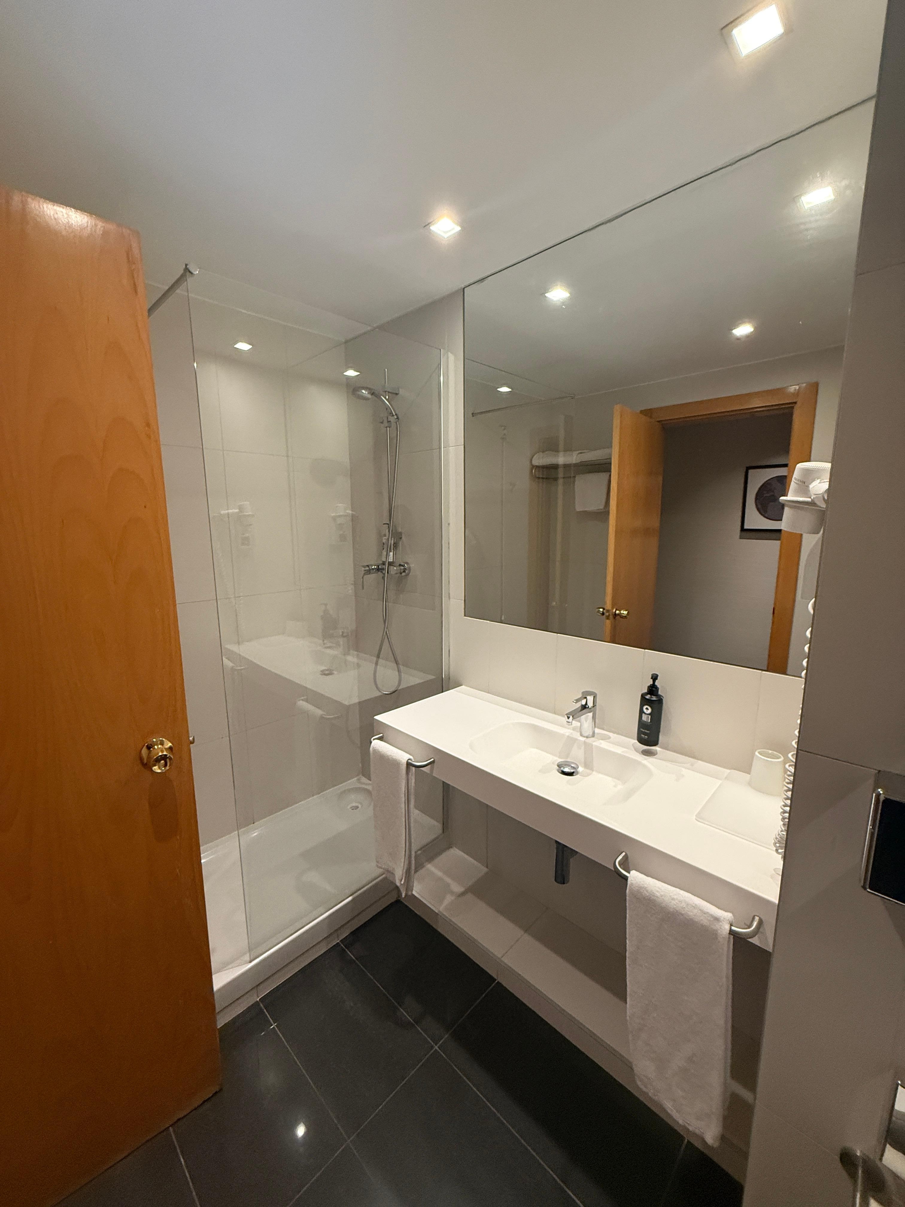Ruime kamer met koffie en thee voorzieningen. Rustig ook. Goede badkamer. Bed en kussens vond ik een beetje zacht. Internationale tv kanalen. Goede en vriendelijke receptionisten, behulpzaam ook. Goede buurt. Op korte loopafstand van een metro station. Uitgebreid ontbijt. Supermarktje op korte loopafstand. Luchthaven op 10 minuten rijafstand. Ik raad dit hotel aan!