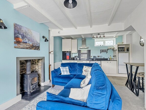 Dit vakantiehuis in Looe is voorzien van een keuken en een open haard