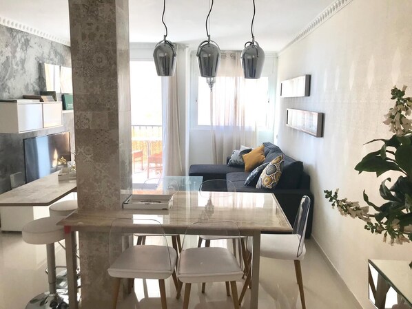 Modern apartment with luxury design, very bright. Newly renovated, with large living room, open kitchen and fully equipped. Terrace overlooking the sea to enjoy the excellent climate of Malaga throughout the year. It has three bedrooms, the warm and exquisite wallpaper makes each room different, ALL with sea views. It has 3 bathrooms (one en suite), original and spacious.