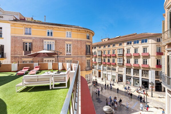 The holiday apartment "Terraza Larios" in Malaga is the perfect accommodation for a stress-free holiday with your loved ones. The 130 m² property consists of a living room, a fully-equipped kitchen with dishwasher, 3 bedrooms, and 2 bathrooms and can therefore accommodate 6 people. The apartment features high-speed Wi-Fi (suitable for video calls) with a dedicated workspace for home office, air conditioning, heating, a washing machine as well as a smart TV with streaming services. Children are allowed and a baby cot and a high chair are also available.