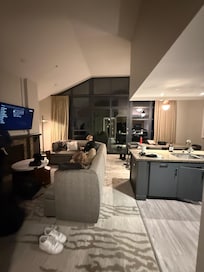 This place is nothing short of fabulous. The space is welcoming with a wonderful view of the mountains, there is a large sofa which folds out into a bed, a fireplace and full kitchen. There are two bedrooms with very comfortable king sized beds and two bathrooms. The hotel is in a prime position in the village so everything is walkable once you’re there. The accommodation also provides a ski locker at Canyon lodge so you don’t even have to worry about carrying equipment back and forth on the gondola. The hosts are extremely good about answering any questions quickly. We had such a great vacation here, thank you!!