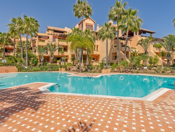 Located in the prestigious Bahía Alcántara complex, this beautiful apartment in San Pedro de Alcántara, Marbella,offers an exceptional vacation experience. Situated right on the promenade and just a few minutes' walk from the town center, it is perfect for a dream vacation. It is only 5 minutes from Puerto Banús, 15 minutes by car from Estepona, and 10 minutes from Marbella center.