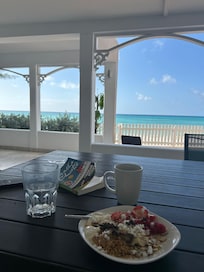 Turtlebottom is the perfect place to land for your vacation. The house is located directly on the beach. Ten steps to the water. You can jump into the ocean & then sun on the large patio. When you need a break from the sun you can move to the covered patio to cool off. There’s an outdoor shower which always feels so good after a swim. The house itself is amazing. Perfectly decorated, modern and well stocked. The kitchen has every utensil you need. There are beach towels & beach toys (floats, snorkeling gear, cooler); a Weber grill; lots of board & card games; books; washer/dryer; lounge chairs for sunning; a large table on the patio for outdoor dining. Large sliders that fold open accordion style so that the entire house is open to the outdoors. The beds are very comfortable. Lots of pillows which is always a plus. The location of the house is great. A short walk to Massy’s (grocery store), Surfers Cafe, Oistins fish market & fish fry (an experience on Friday night). There’s a bus stop in front of the house where you can pick up a shuttle (inexpensive) or catch a cab. Cabs are abundant & easy to find. If you’re walking cabbies will stop to ask if you need a ride. Same with the shuttle. The house is a 5 minute drive ($7.50/US cab ride) from St. Lawrence Gap where there are lots of great restaurants & bars. My family & I have traveled extensively and we always rent from HomeAway. We all have the ability to be, let’s say, critical of our accommodations, however when it comes to Turtlebottom there wasn’t a negative to be said. If you’re lucky to be able to book Turtlebottom do so without hesitation. You will in no way regret your decision as you sit on the patio, gazing at the ocean feeling relaxed, calm, tranquil. Have a wonderful vacation. ☀️☀️