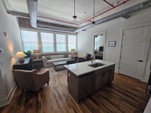 Beautiful condo, old charm with modern style. Rooftop was wonderful to watch football and enjoy our family who lived in the area! Would recommend and stay again.