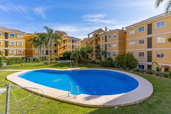 Beschikt Apartment 'Flamingo Golf Park' with Sea View, Wi-Fi and Air Conditioning over een zwembad?