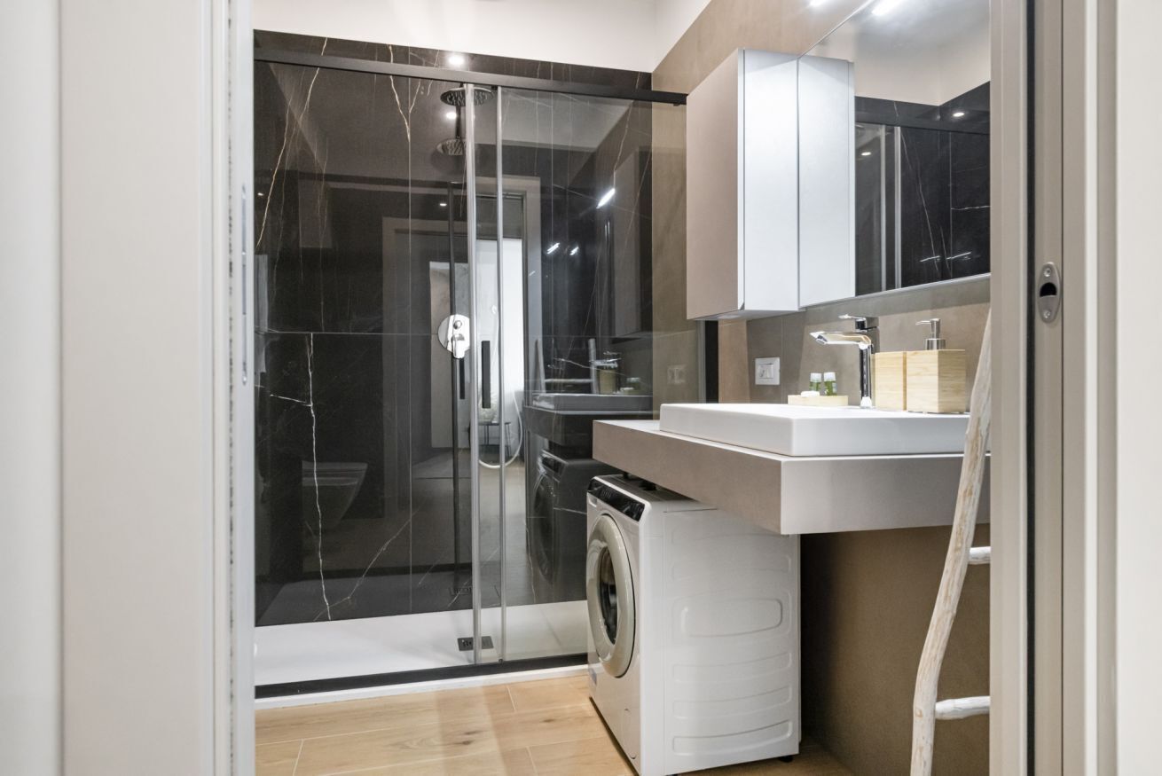 Luxury retreat just a stone's throw from Parco Sempione! This apartment, a triumph of style and functionality will welcome you with a classy living area with open kitchen and sofa bed, an oasis of peace and design ideal for convivial evenings. The bedroom is a parenthesis of well-being with a comfortable double bed and smart TV. The bathroom is a symphony of luxury and comfort with a large shower for a relaxing experience, plus you'll have the green M2 Metro Line just a 5min walk away!
