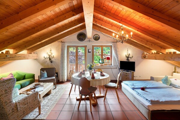 Cet appartement vous donne rendez-vous à Mittenwald, plus précisément en bord de rivière. En quête d'aventure ? Dirigez-vous vers l'emblématique Station de ski de Garmisch-Partenkirchen. Plutôt envie de vous poser et d'admirer la beauté naturelle des lieux ? Les tout aussi sympathiques Lac Walchen et Nordkette (chaînon) n'attendent que vous ! Les agréables Musée de la lutherie Geigenbaumuseum et Alpspitz méritent aussi une visite. L'escalade, la randonnée et les balades en vélo sont de formidables activités pour découvrir toutes les beautés de la région. Consultez notre guide de voyage sur Mittenwald