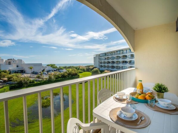 Dit appartement in La Grande-Motte is voorzien van een keuken en een gemeubileerd balkon of terras