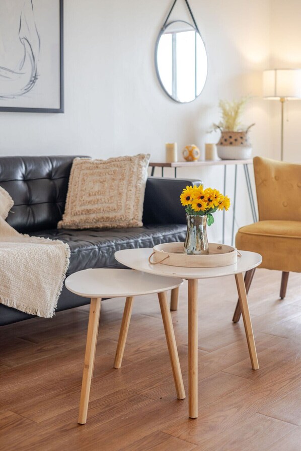 - Open-concept living space with a Smart TV for streaming your favorite shows