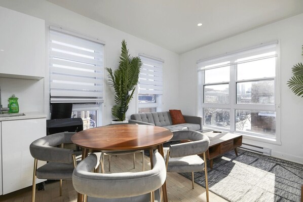 Cet appartement vous donne rendez-vous à Montréal, plus précisément dans le centre-ville. Les célèbres Montréal souterrain et Rue Sainte-Catherine valent le détour si une mission shopping est à l'ordre du jour. Les boutiques ne sont pas votre tasse de thé ? Tournez-vous plutôt vers les non moins emblématiques Place des Arts et Parc de loisirs La Ronde. Consultez l'affiche de l'emblématique Centre Bell et prévoyez du temps pour passer par l'agréable Jardin botanique de Montréal, attraction prisée des environs. Consultez notre guide de voyage sur Montréal