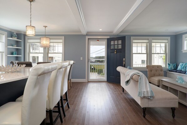 Our luxury Monument Beach, water view villa is a newly built property and it has all of the upscale amenities to offer. You may enjoy the water views sitting on the spacious porch or while enjoying your dinner in the dining area. The master suite has a beautiful balcony to enjoy the views while sipping your morning cup of coffee. There are 3 bedrooms and 3 full baths central AC , outdoor grill, outdoor grill and an open concept kitchen to enjoy! Walk to the beach, to the ice cream shop, bakery and the pizza place or play tennis or basketball with the family near the playground. This home is unique and will give you a summer memories for a lifetime!