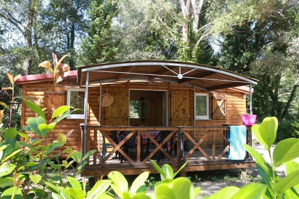 Séjour en bungalow - minimaliste mais suffisamment confortable - literie excellente - grande salle de bain. Bungalow idéalement placé quand on vient avec des enfants puisque sans accès voiture.Coin baignade très bien ((encore meilleur quand l'eau du lac sera un peu plus chaude !). Restaurant très bien et accueil très sympa ! Seul petit point négatif de l'avis des enfants (2 de 4 ans) : pas de toboggan dans l'espace jeux ! Bref un super petit séjour à refaire...