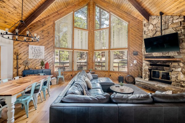 Property was great! Lots of outside space to explore for our 8 children under 12! Hiking trail .35 miles away! They had a great time; but were quite dirty from the dust and hiking! We ate most meals on the deck so as to avoid dirtying inside furniture- Showers every night to wash off the day!However- the patio furniture was not meant for children. We were charged for the cost of dirty cushions. The cabin has two bathrooms for 10 people- and if you’ve had children who spent all day outside, white towels are not the best choice. We were charged for these as well. We also had to wash all dishes and silverware after each meal to use for the next as there were fewer than 10 sets available (not enough cereal bowls for breakfast). The upstairs bed is very lumpy and so we slept on the downstairs couch the last 2 nights. We paid a good amount of money to spend time as a family away from the city in a cabin that seemed cozy and not too fancy. No all clad pans, Henkel knives or pottery barn furniture, not even a kettle to boil water for tea or French press. This cabin is great if you want to sit on the deck or watch movies all day (television in every room!); but this is not what our family does.