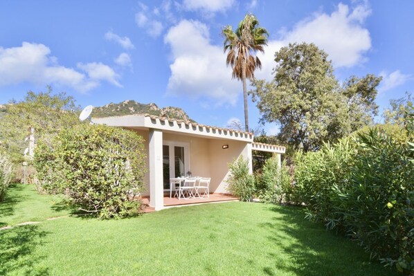 Two-room villa of approximately 40 m2 with small garden consisting of a double bedroom with double sofa bed and equipped kitchenette with oven, bathroom with shower, loggia equipped for outdoor dining. Sat TV, wi fi line and air conditioning