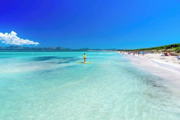 Spectacular front-beach villa with garden in Platja de Muro.This fantastic newly-built house is located in a sought-after area since it has direct access to the beach of Platja de Muro. The exteriors have several furnished terraces overlooking the beach, a large natural grass garden, and a barbecue.This house for six people is divided into two levels. There is a fully-equipped kitchen with high-end appliances, a spacious living-dining room with access to the terrace and sea views, two full bathrooms, and three double bedrooms -two overlooking the beach. The villa, which is tastefully decorated with an eye to quality, is equipped with air conditioning, heating, Wi-Fi, and satellite TV.The property is located in a quiet residential area, ideal for spending a holiday with family or friends, with many restaurants, shops, and supermarkets. It has good connections with the coastal towns around since there is a bus route that covers the areas from Port de Pollença to Can Picafort. The villa is very close to Albufera National Park, which is ideal for walking or cycling and enjoying the Mediterranean fauna and flora within. However, what stands out in the area is the large sandy beach with crystal-clear waters of Platja de Muro, which has been awarded the European Union’s prestigious Blue Flag, in meeting all the requirements of comfort, cleanliness, and accessibility.Air conditioning:As far as the air conditioning system is concerned, the accommodation has hot/cold air conditioning units in the living room and in the master bedroom. In the other rooms, you will find radiators and fans at your disposal.
