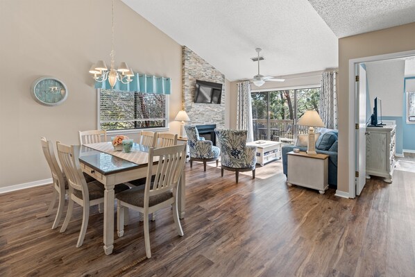 Enjoy your morning coffee or tea on the deck overlooking the beautiful lake. Our unit is bright and sunny as it is an end unit. The cathedral ceilings give it an open and airy feel. It is on the 2 nd floor. There are 3 ceiling fans to keep you cool, in addition to central A/C and heat. We are a 5 minute drive to the super Walmart for your groceries and household staples, as well as 5 minutes to over 30 restaurants, 5 mini golf courses and there is a golf course right across the street. Take a 10 minute drive and you can enjoy Barefoot Landing, Broadway at the Beach and at least 7 more golf courses. There are several music venues as well including: The Carolina Opry Theater, House of Blues, Crocodile Rocks Dueling Pianos, and Legends in Concert to name a few. The Myrtle Beach Aquarium is less than 15 minutes away, as well as several amusement parks for the kids.