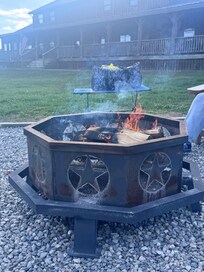 Kitchen was fully equipped with everything needed. We had trouble with the k-cup side of the coffee maker but we were at least able to brew a pot. The living room is the best feature! Plenty of sitting area for the seven of us without feeling cramped. We had to use our camping chairs around the dining room table as there is only seating for four. But we have been staying here for four years now so we know what we need to bring, extra chairs and cushions. The hot was used all weekend. We did have an issue the second day with it starting but it was quickly resolved. Sitting out by the fire pit on a chilly night is so relaxing, one of our favorites while watching each other play cornhole. Another successful annual girls weekend!