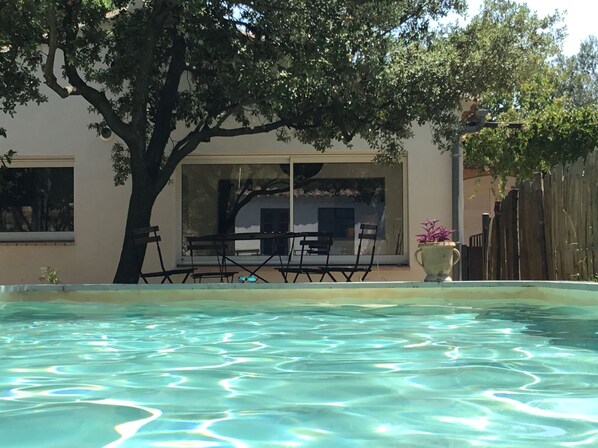 Ja, deze accommodatie heeft een buitenzwembad.