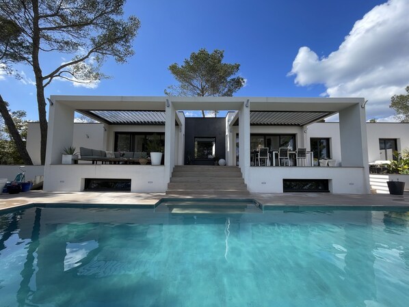 Plancher rafraîchissant, pergolas orientables plancha gaz, barbecue weber, internet wifi, Tv Pionneer écran plat , Hifi Bose, PS5, Table de Ping Pong.