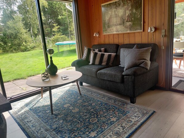 We have a nice cozy cottage close to Nyminde / Blåbjerg plantation. Here is a good atmosphere and nice to be in great nature. The house has many good features that make it easy to be a couple or a family on holiday in this house. It is close to Days Resort, Sea West, where there is access to the water park, bowling, restaurants and more. The house is approximately 85 m2 incl. the conservatory. The conservatory is a lovely bright room which is nice to enjoy dinner inside outside. There are 3 bedrooms - sleeps 6 - 1 double bed, a room with two single beds and one with one top bunk bed and a Futon. Bathroom with shower. Fully equipped kitchen with stove with oven and refrigerator with freezer on top. Dishwasher, microwave, coffee maker and kettle etc. The kitchen is located in an open plan living room which has a wood stove.