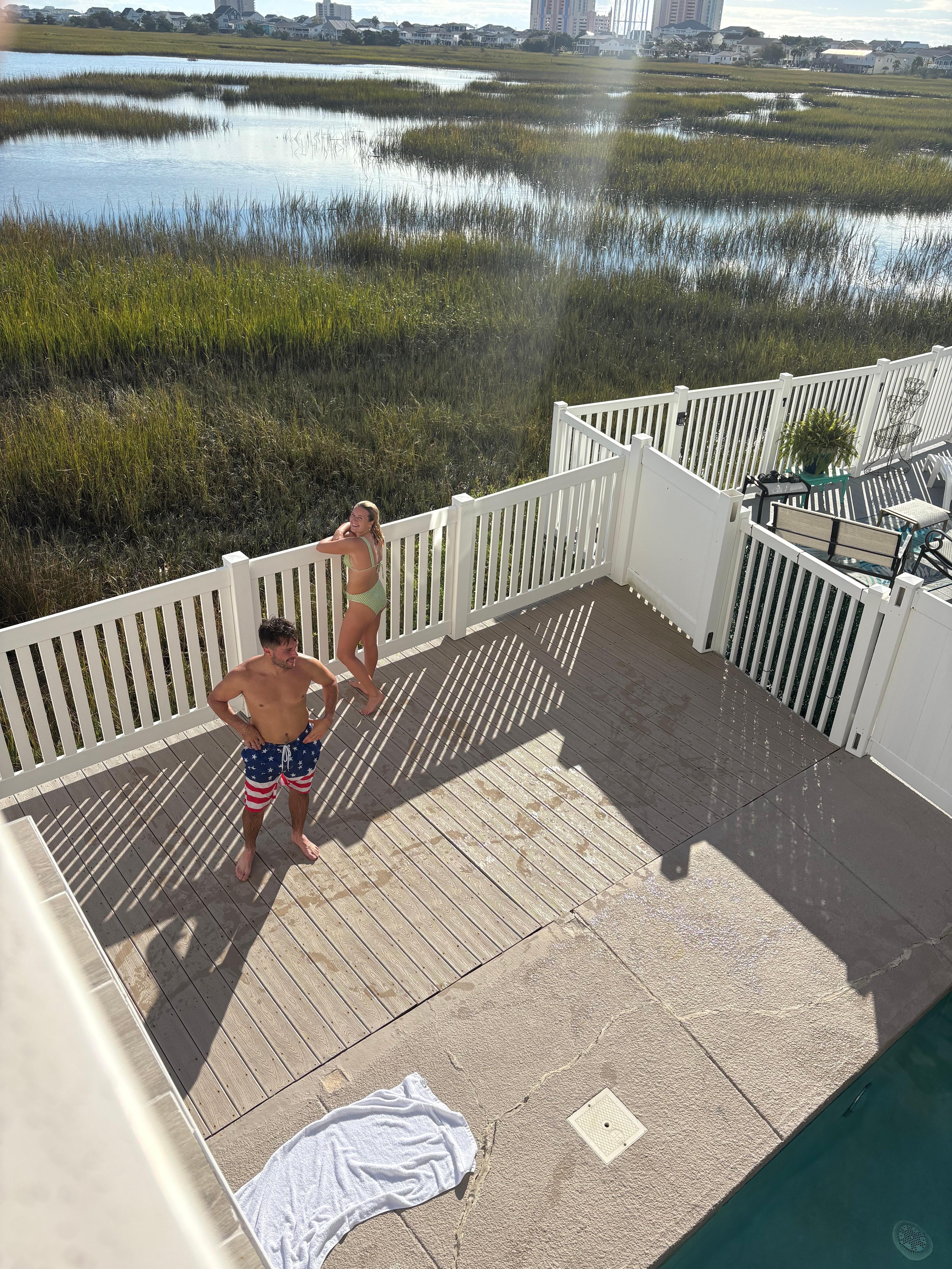 Beautiful, furnished, 5 Bed 4 Bath home overlooking the marsh, and just a couple blocks to the Ocean!! Home sits on one of the best lots in Pointe Marsh featuring private in-ground pool, outdoor shower and 2 decks spanning the width of the home to relax and enjoy your stunning marsh views! Watch the 4th of July fireworks from your back decks!! Extra living space outside!! There is hardwood and tile throughout the main living area. Kitchen features granite counters and a breakfast bar. Along with the open living area, the first floor ( Need to take stairs to get to the first floor) has 1 bedroom and bathroom and a large laundry room with sink. 4 more bedrooms, including the primary suite are located on the 2nd floor. Primary bedroom opens onto the top deck. The large primary bath has separate jetted tub and walk in shower. All this and with easy access to entertainment, shopping and restaurants.