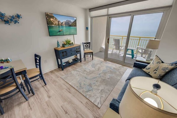 Amazing direct oceanfront views from the balcony are the perfect setting for your morning coffee or evening cocktails. Enjoy the convenience of your own kitchen featuring a full-sized fridge, microwave, and HDTV