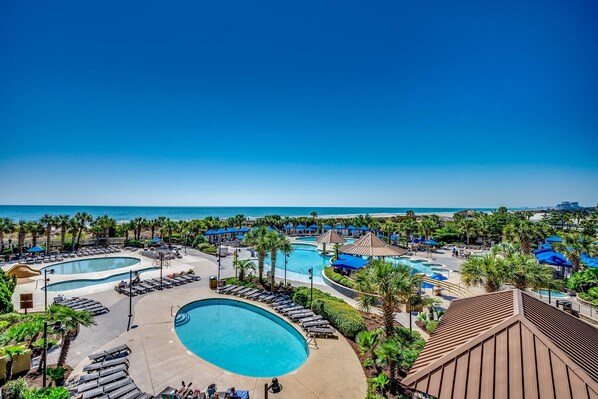 - Rental comes with full access (at no additional charge!) to the 2.5 acre pool area with indoor and outdoor pools and hot tubs, a swim-up pool bar, infinity pool, indoor lazy river, and adults-only and kiddie pools; note that in the cooler months, they typically heat at least one outdoor pool