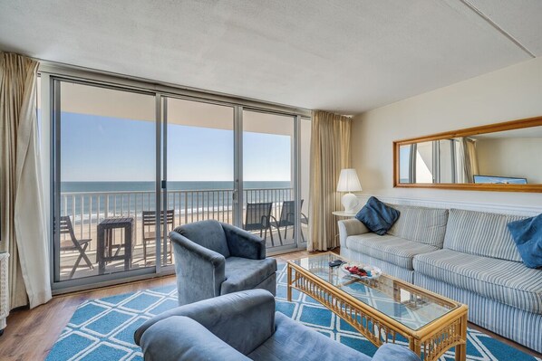 Welcome to Sea Gate 503! This 1 Bedroom/1 Bath Oceanfront Condo offers stunning Ocean Views, a relaxing beachy vibe, and plenty of space for the whole family to relax and recharge. From the coastal inspired decor to the prime location, this charming retreat has everything your family needs for its best vacation yet!
