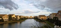 Sunset across the street over the inland waterway.